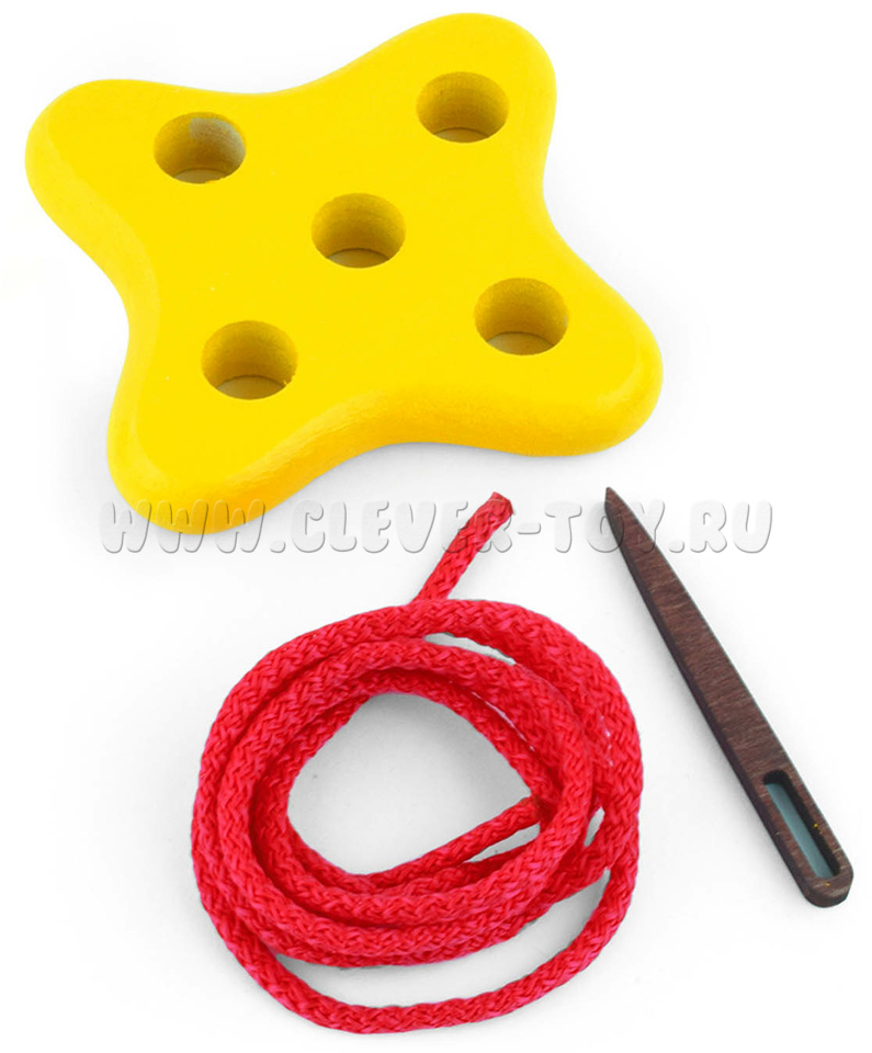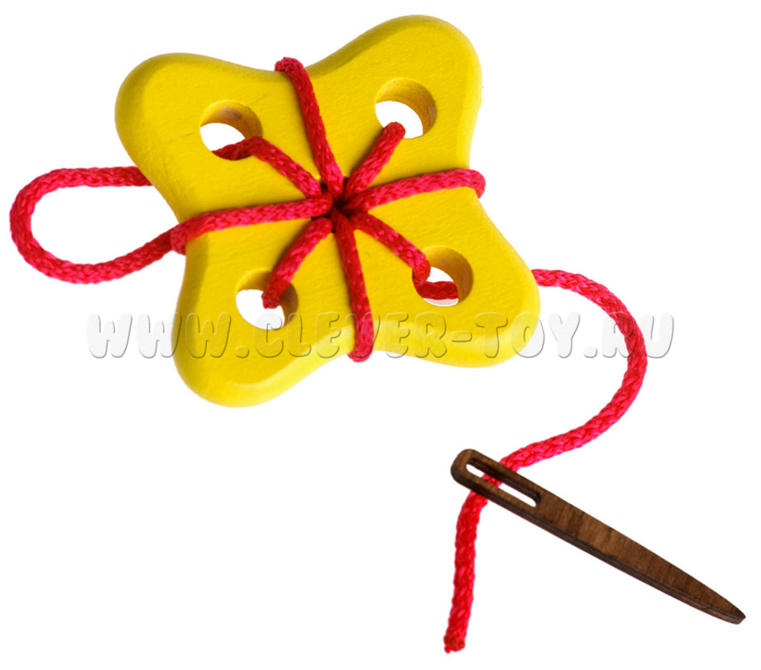 Состоит из иголки, шнурка, цветка с 5 отверстиями.