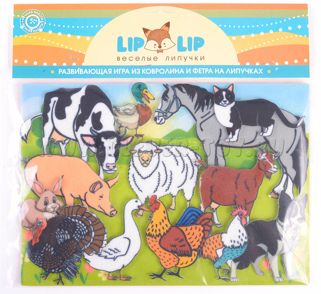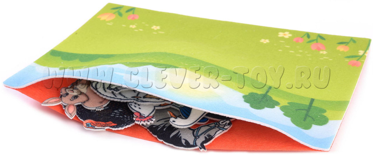 Развивающая игра-конструктор из фетра "Ферма". Комплектация: Набор из 13 фигурок домашних животных, Игровое поле с карманом 20*30см. Материал: фетр.