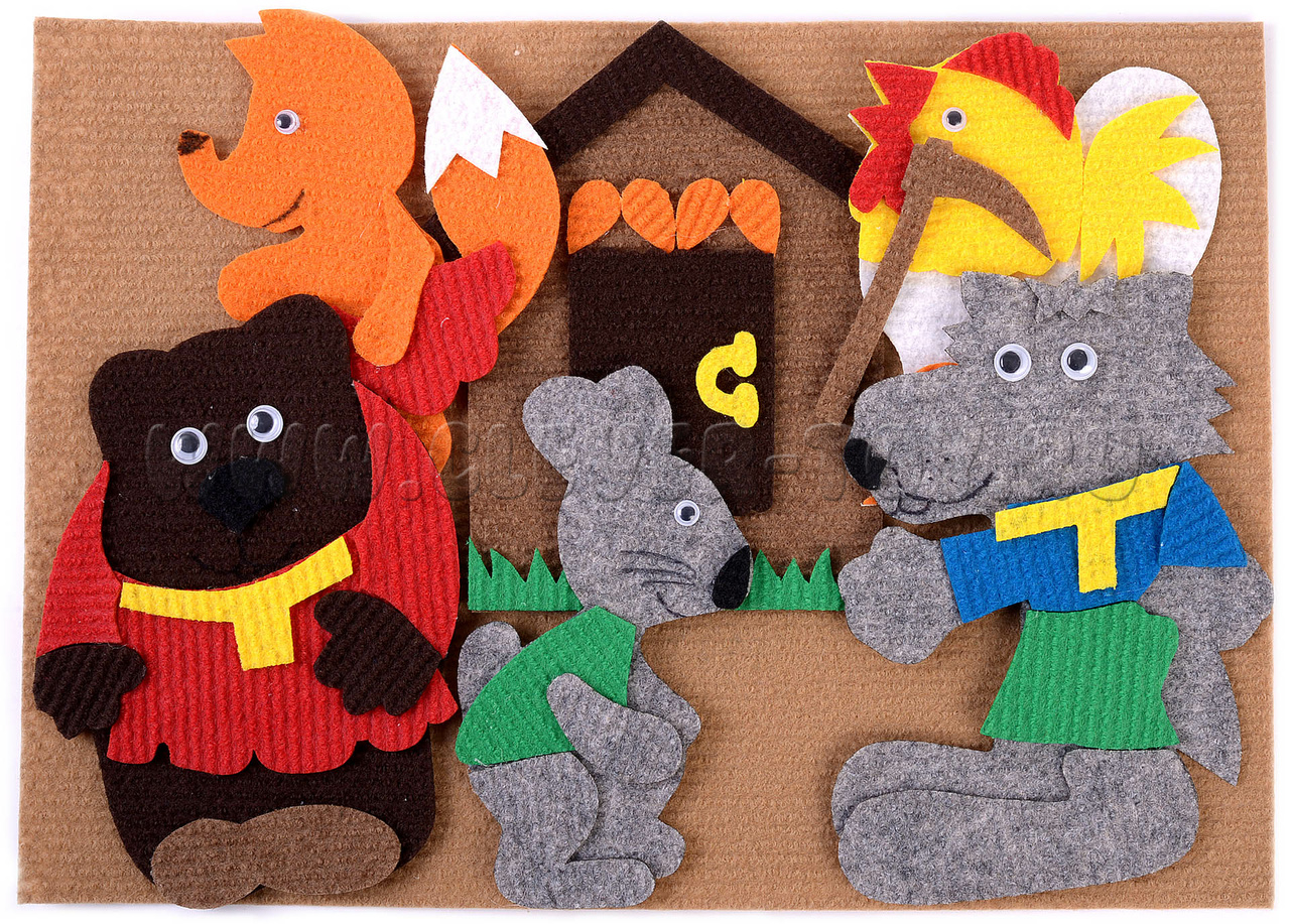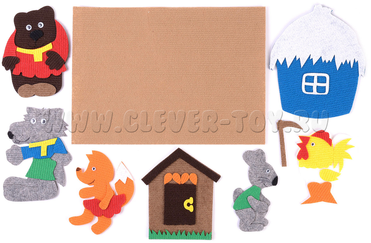 Игровой ковролиновый конструктор для дошкольников по мотивам сказки «Заюшкина избушка».