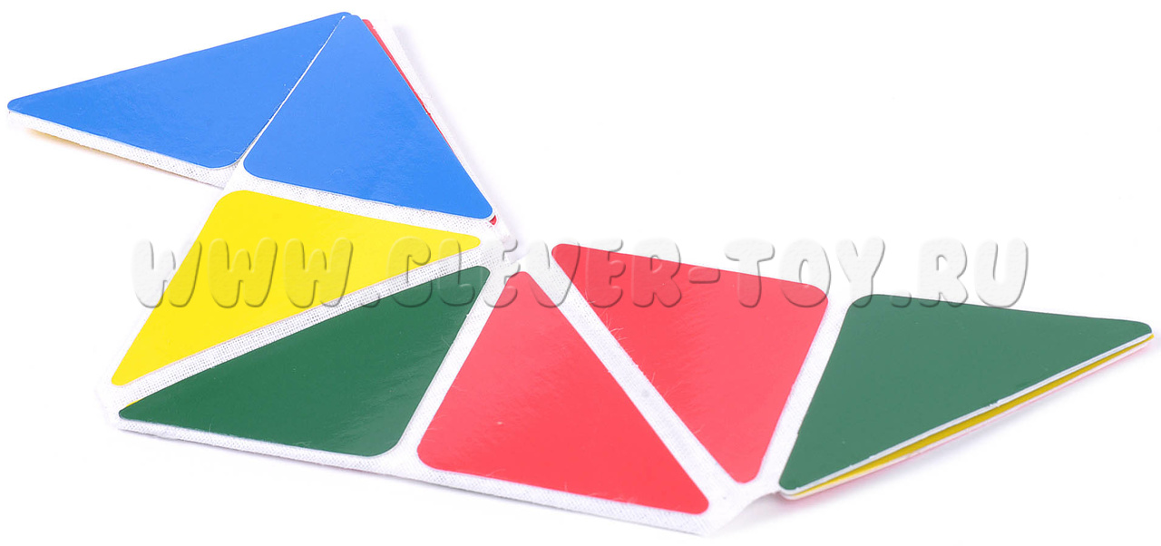 - полоска, состоящая из разноцветных треугольников (красные, зелёные, синие, жёлтые), закрепленных на тканевой основе, что позволяет легко превращать полоску в любую фигуру;