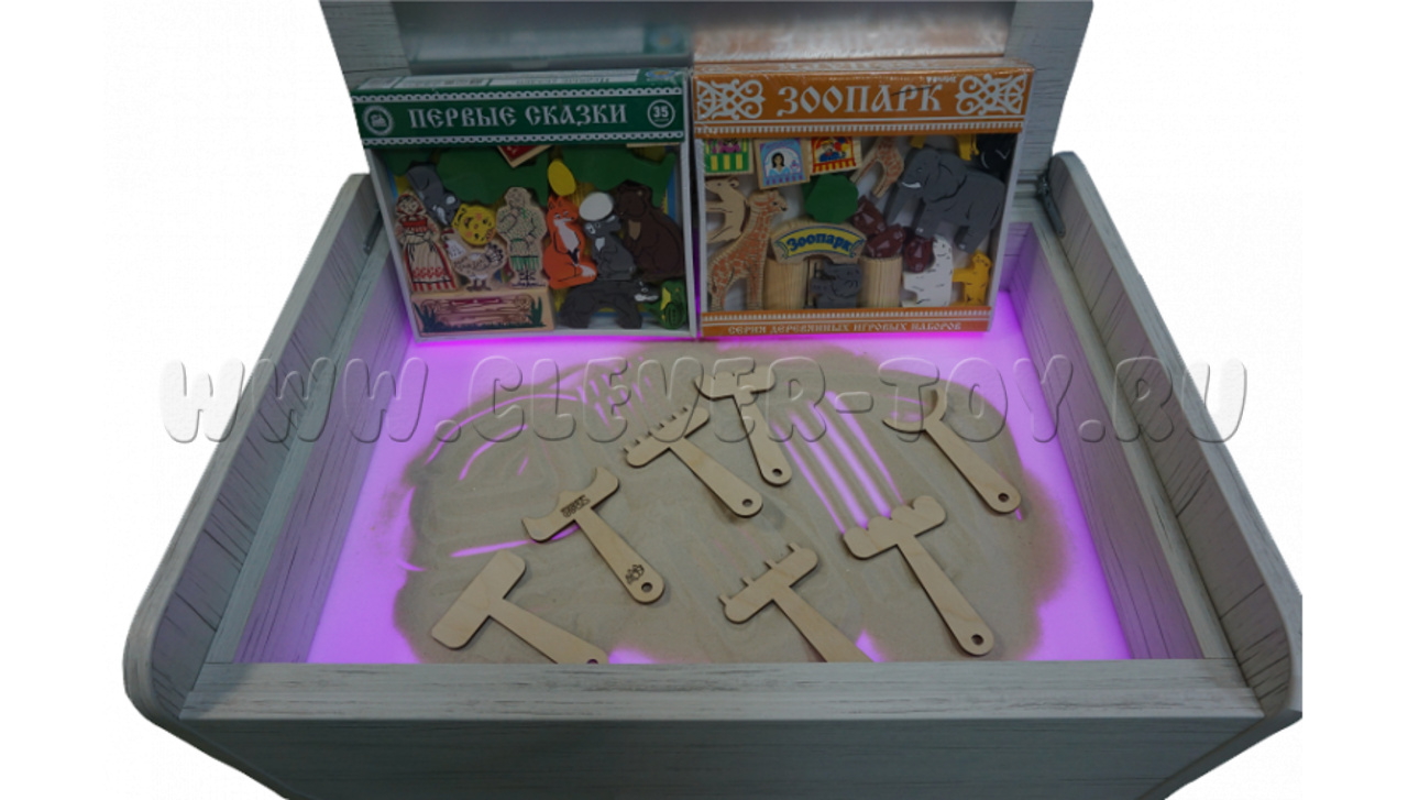 • деревянные фигурки и инструменты для очистки песка.