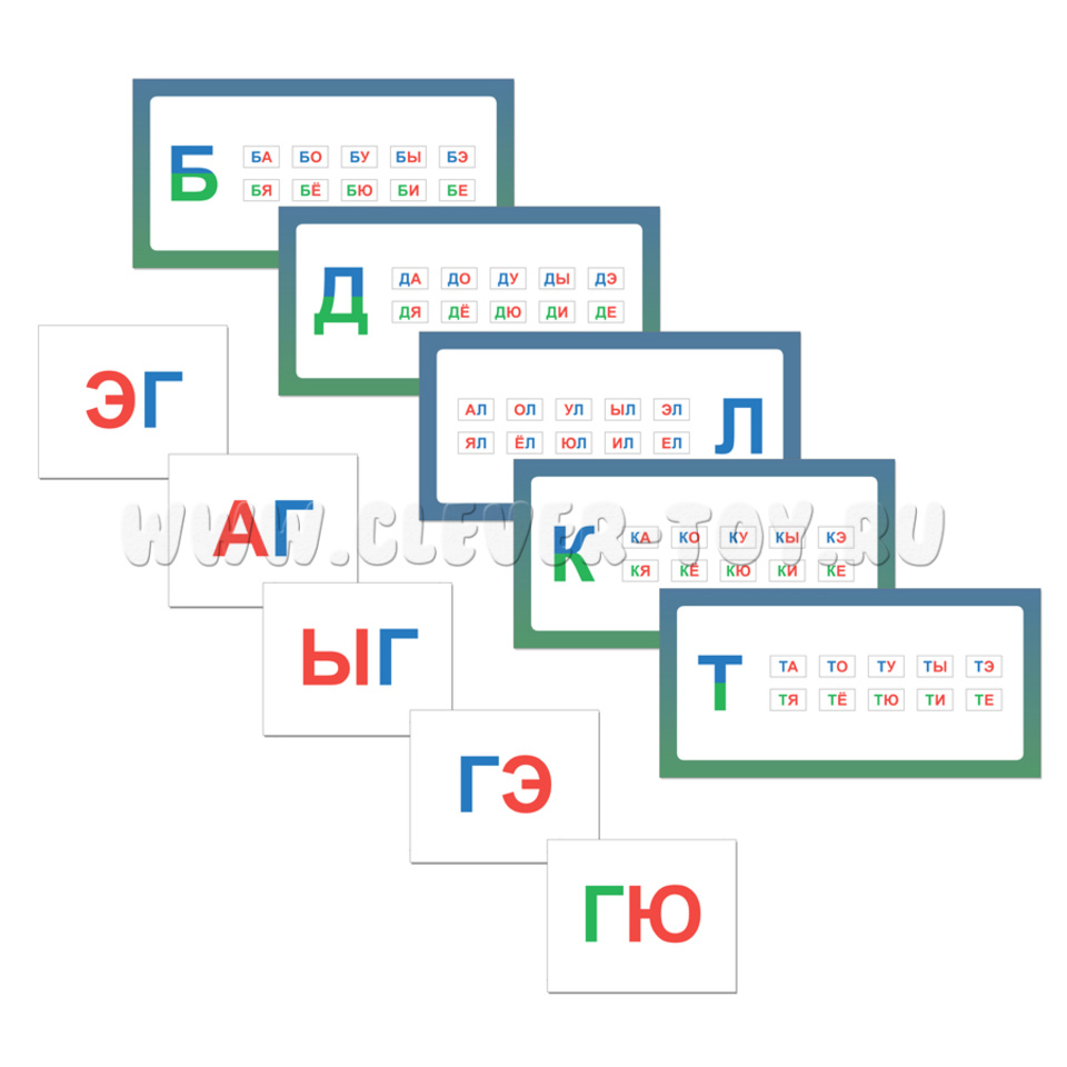 - демонстрационные карточки «Слоги» - набор из 20 двухсторонних карточек размером 190х100 мм и 360 карточек размером не менее 90х70 мм