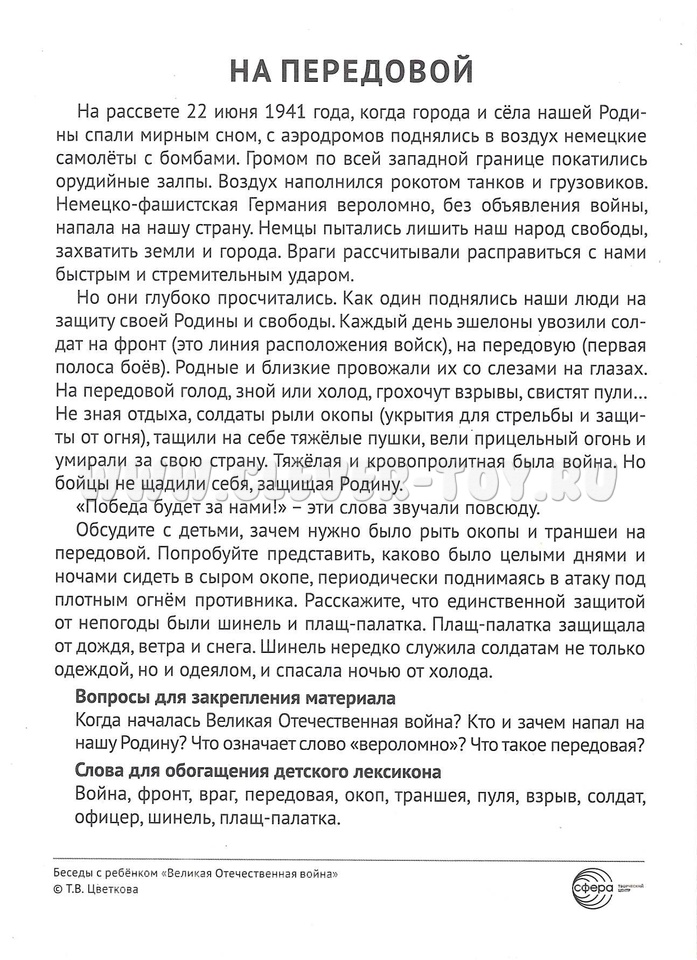 Беседы с ребенком. Великая Отечественная Война 12 картинок с текстом