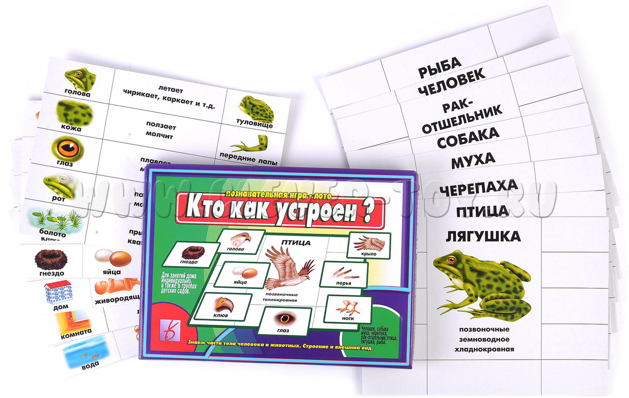 - Ведущий показывает маленькие карточки с частями тел, а дети смотрят, подходят ли они их животному. Кто первым правильно закроет большую карту, тот и выигрывает.