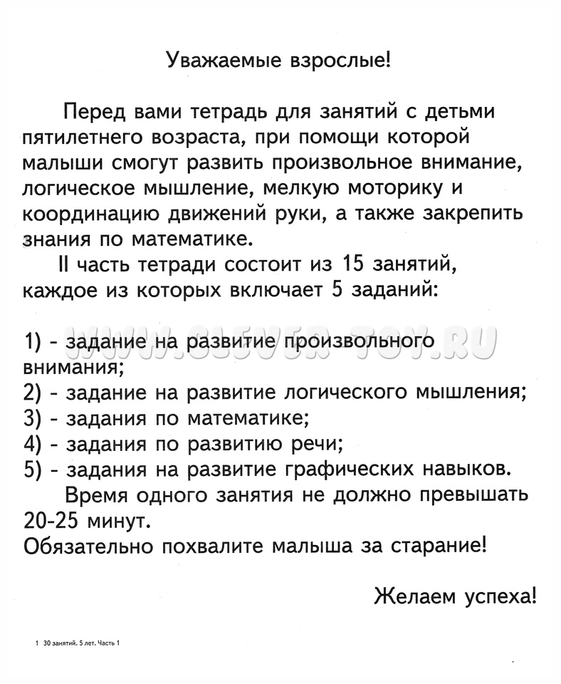 Рабочая тетрадь 30 занятий для 5-и лет ч.2