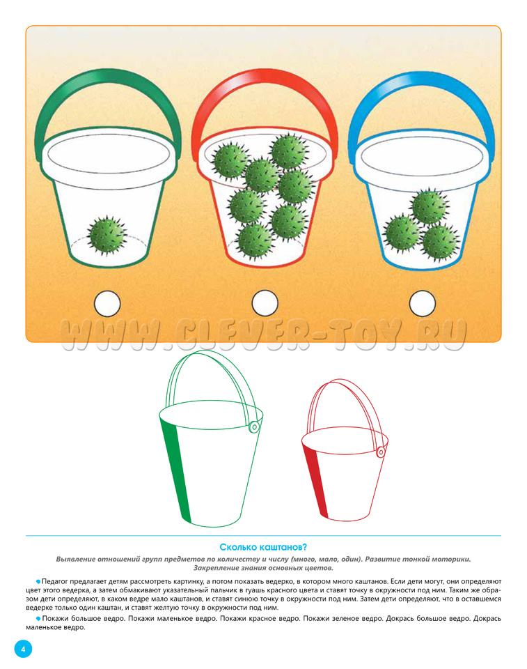 На следующий день продолжите работу на этой страничке: "Покажи большие шары. Покажи маленькие шары. Раскрась большие шары так, как показано. Раскрась маленькие шары так, как показано". (для раскрашивания лучше использовать либо восковые мелки, либо гуашь).