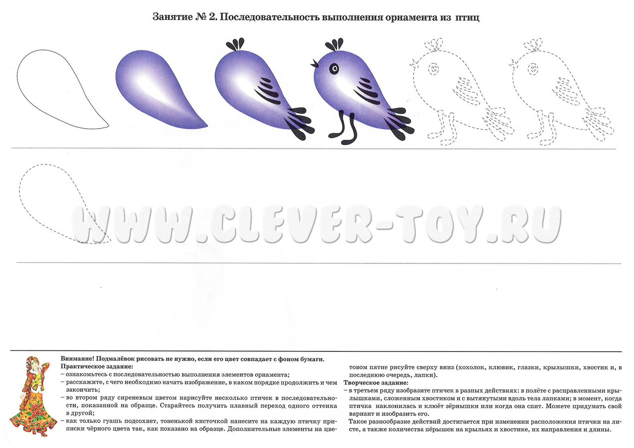 - Последовательность выполнения орнамента из птиц;