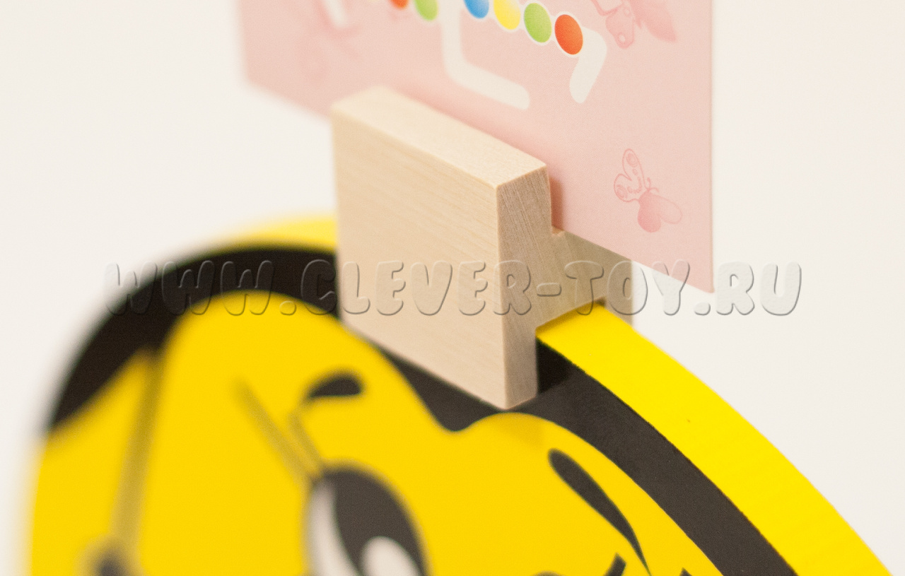 1. Устанавливаем карточку в специальный держатель на макушке пчелки и располагаем фишки так, как на картинке;
