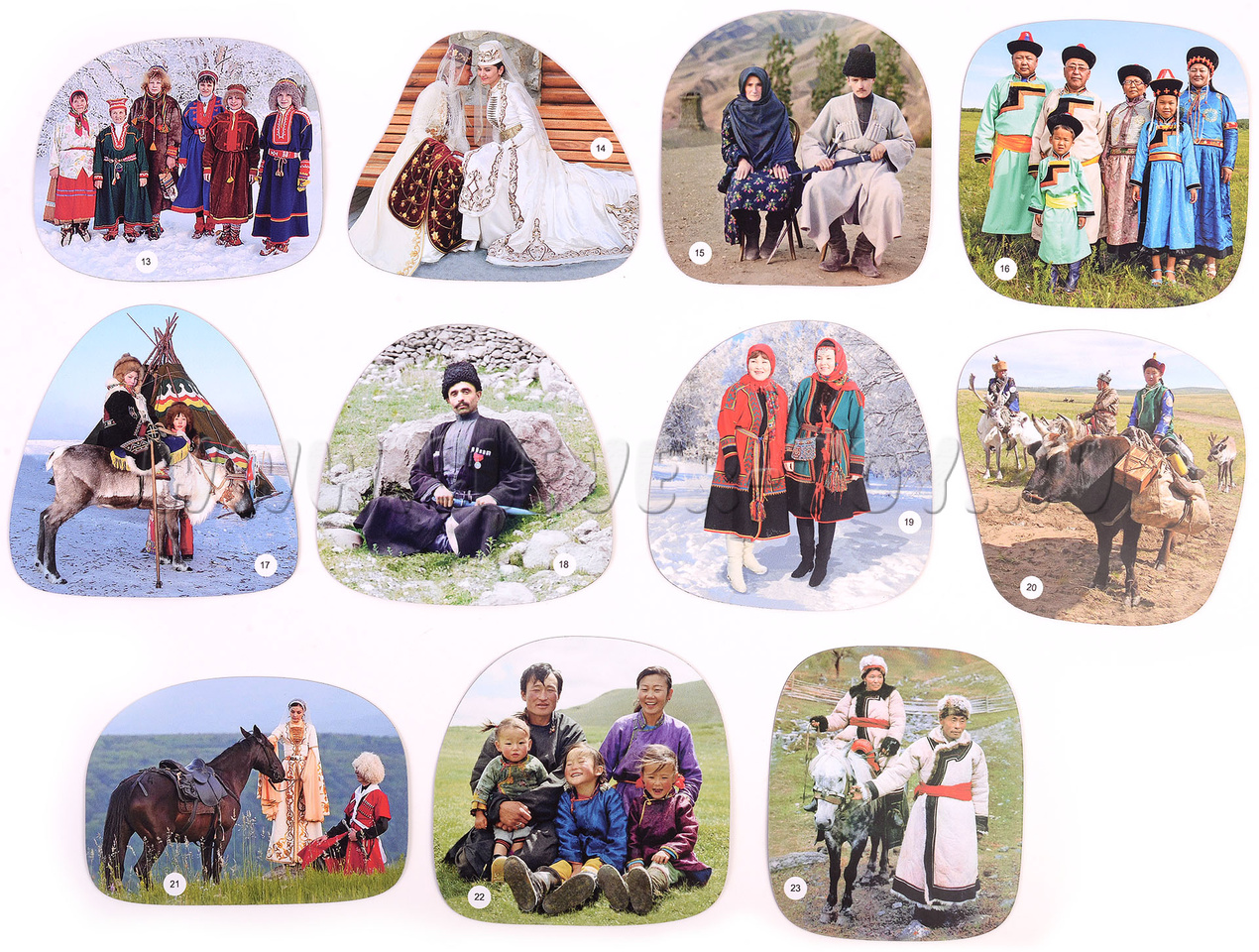 В наборе 23 магнитных карточки, которые рассказывают, о разных народах, проживающих в нашей стране.