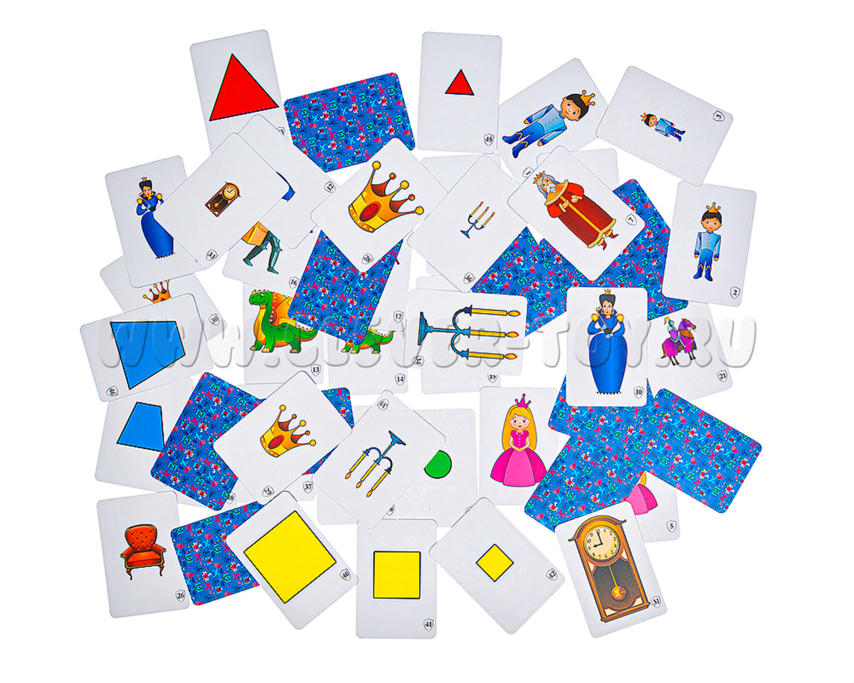 - Игра «Замковый бой». Все карточки делятся между игроками. Каждый игрок складывает свои карты стопкой лицевой стороной вверх. Игроки одновременно выкладывают верхнюю карту своей стопки. Игрок, выложивший карточку с самым большим изображением, забирает себе все карты…
