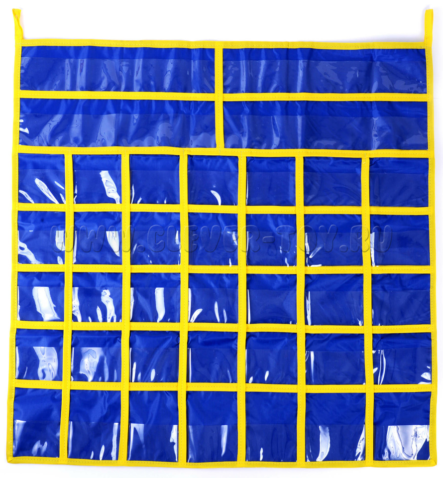 35 прозрачных кармашков (ширина 8 см) для букв, слогов и знаков,