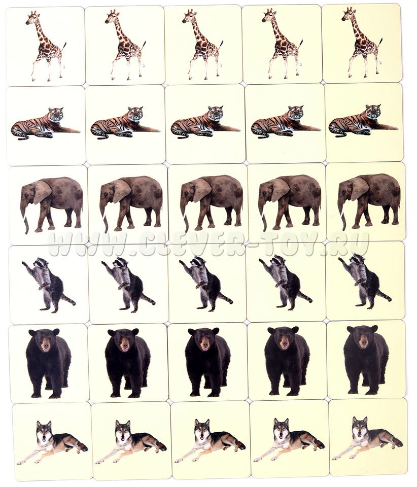Независимо от тематики в каждом наборе вы найдёте 30 карточек: по 5 карточек каждого из шести изображений.