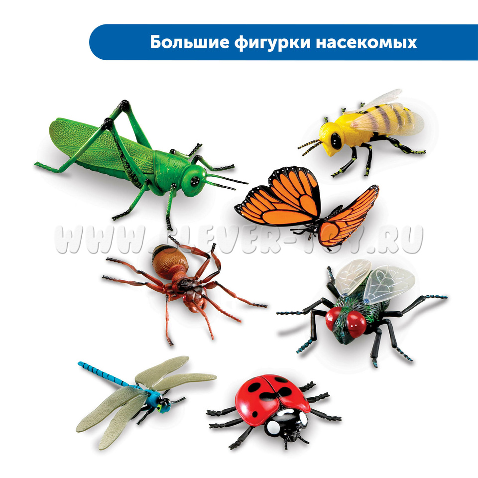 - Большие фигурки насекомых 7,5-15 см (Кузнечик, Муравей, Бабочка, Муха, Пчела, Стрекоза, Божья коровка)