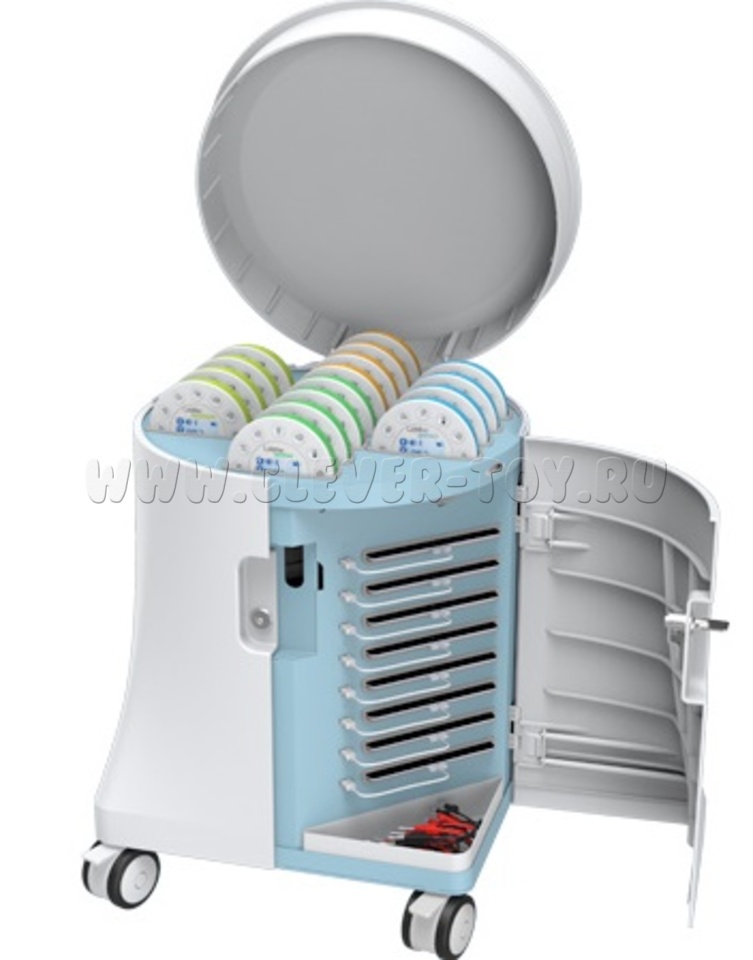 Мобильная тележка для хранения и подзарядки 16 ЛабДисков, в которую поместится любой набор цифровых лабораторий вместе с планшетами.