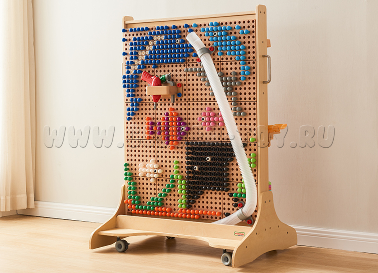 Внимание: колышки, сокровища, шнуровки, винты, кинетические треки, развивающие панели и другие комплекты для STEM-стены приобретаются отдельно.